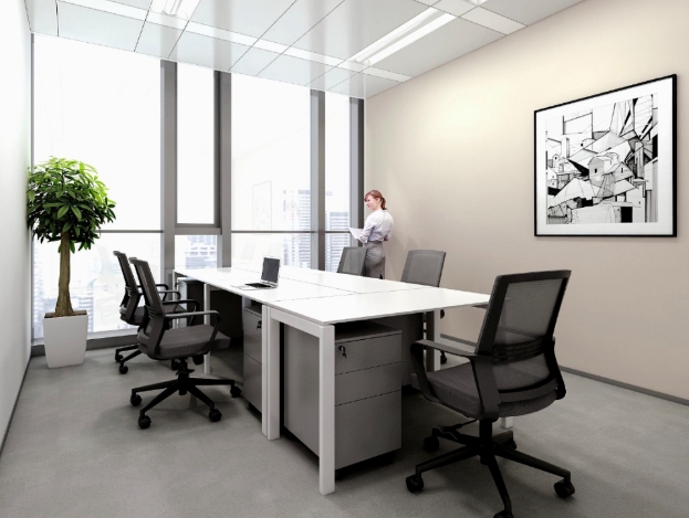 開放式工位是一個敞開式的辦公區(qū)域,以固定的工位來出租給不同的客戶,每一張辦公桌配有帶鎖文件柜和辦公椅。