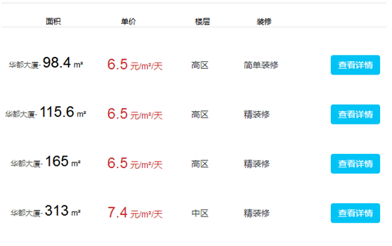 華都大廈辦公室出租及價(jià)格