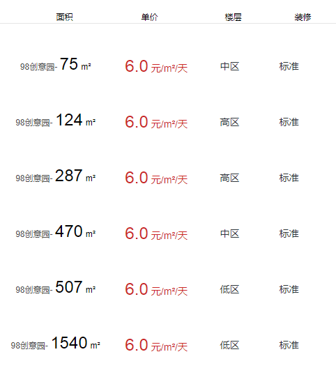 98創(chuàng)意園辦公室出租及租金
