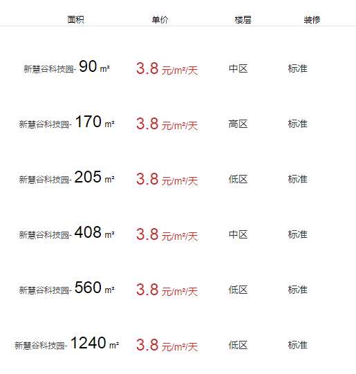 新慧谷科技園辦公室出租及租金