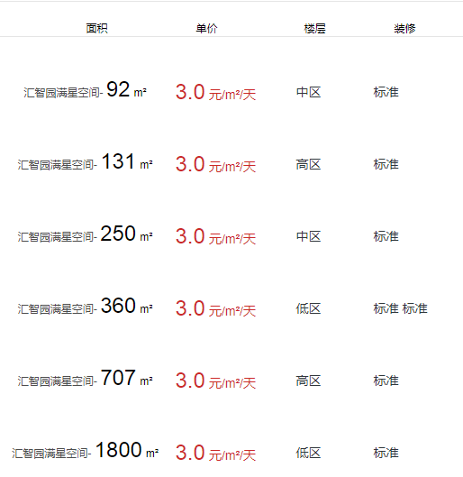 匯智園滿星空間辦公室出租及租金