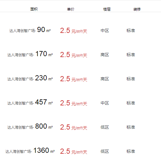 達人灣創(chuàng)智廣場辦公室出租及租金