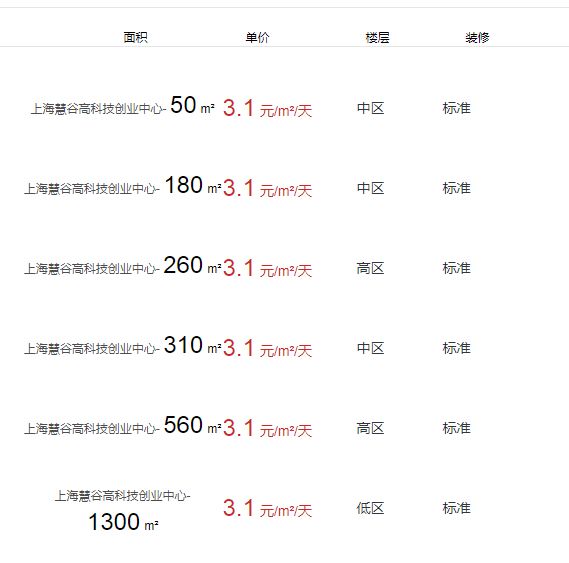 上海慧谷高科技創(chuàng)業(yè)中心辦公室出租及租金