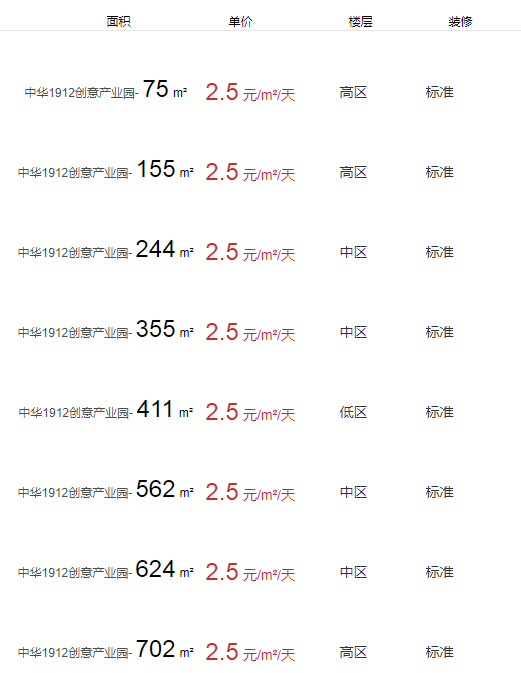 中華1912創(chuàng)意產(chǎn)業(yè)園辦公室出租及租金