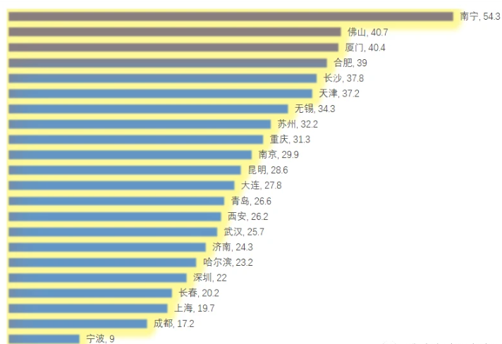 我們認為比較嚴重的成都,可能是統(tǒng)計上有些問題,只有17.2%,應該是那些在高新區(qū)和天府新區(qū)大片建成的高樓還沒有計算入內(nèi),老城區(qū)搬走的空樓的計算,可能也有不小的誤差。
