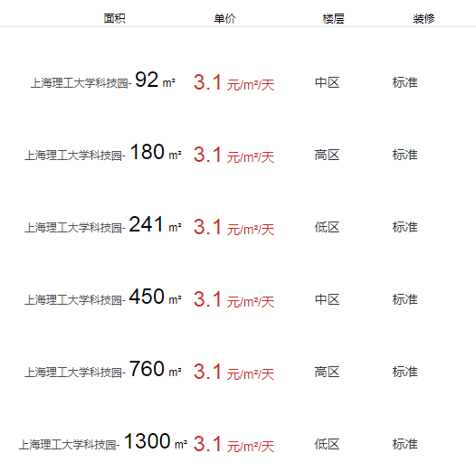上海理工大學(xué)科技園辦公室出租及租金