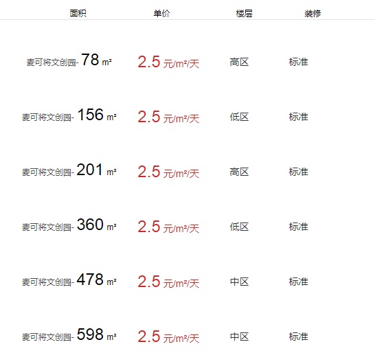 麥可將文創(chuàng)園辦公室出租及租金