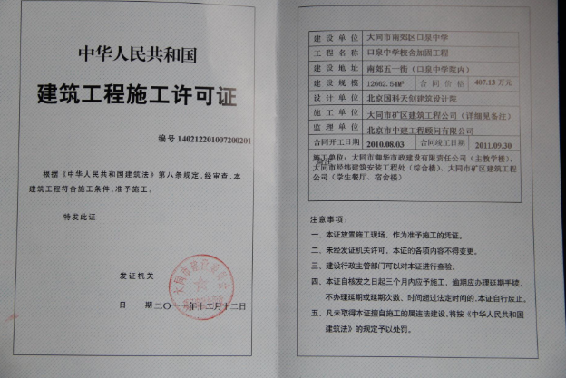 建筑工程施工許可證是建筑施工單位符合各種施工條件、允許開(kāi)工的批準(zhǔn)文件,是建設(shè)單位進(jìn)行工程施工的法律憑證,也是房屋權(quán)屬登記的主要依據(jù)之一。