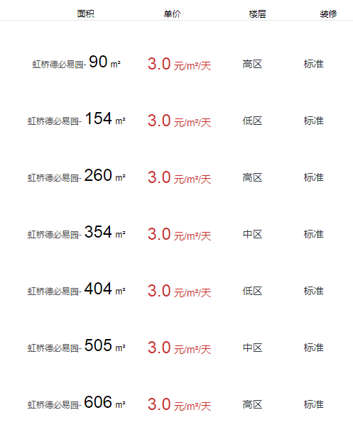 虹橋德必易園辦公室出租及租金