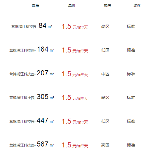 茸錦浦江科技園辦公室出租及租金