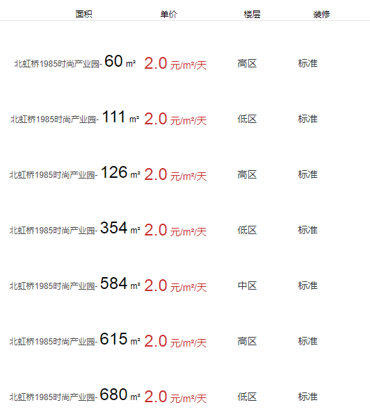 • 北虹橋1985時尚產(chǎn)業(yè)園辦公室出租及租金