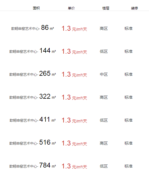 • 歆翱申窯藝術中心辦公室出租及租金