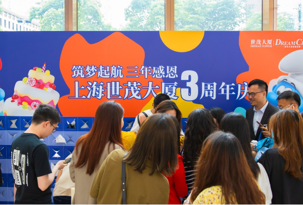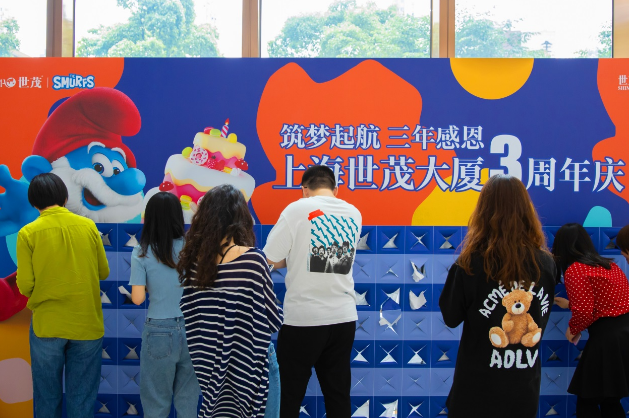 上海世茂大廈喜迎三周年,98%出租率逆勢(shì)領(lǐng)跑,藍(lán)精靈公益巡展亮相濱江世茂52+