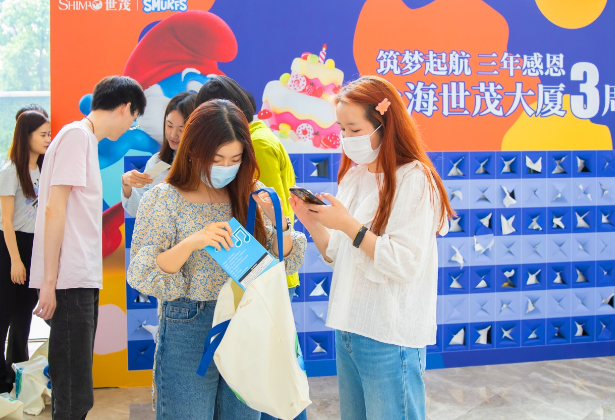 5月28日,上海世茂大廈迎來(lái)了三周年慶,寫(xiě)字樓大堂的巨型盲盒墻使平日行色匆匆的白領(lǐng)紛紛駐足,探尋藏在盲盒中的無(wú)限驚喜。同時(shí),世茂大廈裙樓商業(yè)濱江世茂52+帶來(lái)“DREAM SMURF”藍(lán)精靈首次中國(guó)公益巡展,為濱江人民的休閑娛樂(lè)生活再添新鮮活力。
