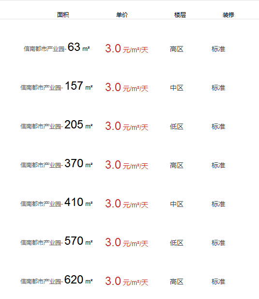 • 信南都市產(chǎn)業(yè)園辦公室出租及租金