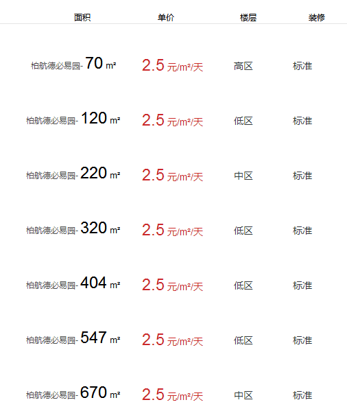 柏航德必易園辦公室出租及租金