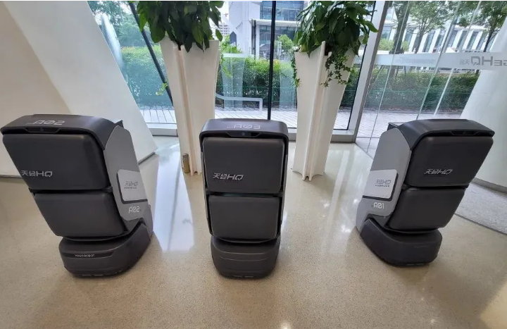 上海辦公樓臨空?qǐng)@區(qū)內(nèi),為白領(lǐng)送餐的竟是6個(gè)“機(jī)器人”!