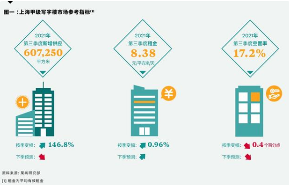 根據(jù)萊坊最新發(fā)布的2021年第三季度《上海甲級寫字樓市場報告》(下稱報告)顯示,第三季度,上海甲級寫字樓平均租金止跌回升,達到每天每平方米8.38元,環(huán)比上漲0.96%。