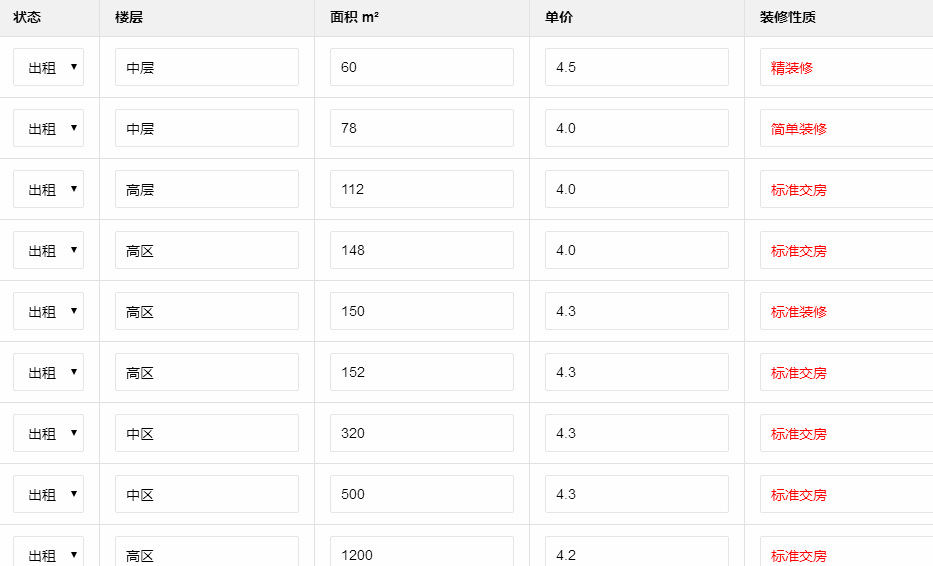 租金范圍:4