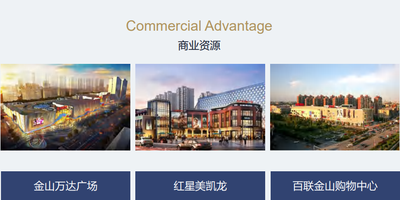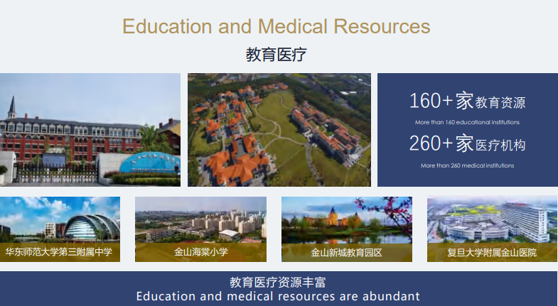 區(qū)域內(nèi)有金山萬達(dá)廣場、百聯(lián)金山購物中心、紅星美凱龍等商業(yè)資源。世界外國語學(xué)校、蒙山中學(xué)、華東師范大學(xué)第三附屬中學(xué)等一站式教育資源。復(fù)旦大學(xué)附屬金山醫(yī)院、公共衛(wèi)生中心等醫(yī)療資源。上海灣區(qū)科創(chuàng)大廈、金山工商聯(lián)大廈、灣區(qū)云谷等產(chǎn)業(yè)配套。各種資源豐富,享受金山全方位紅利。