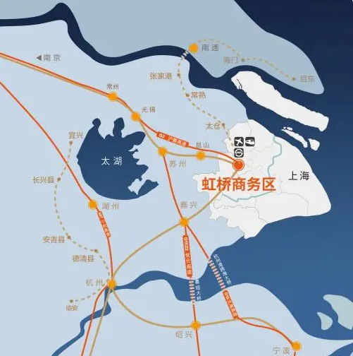 2個(gè)樞紐:虹橋國(guó)際機(jī)場(chǎng)、虹橋火車站