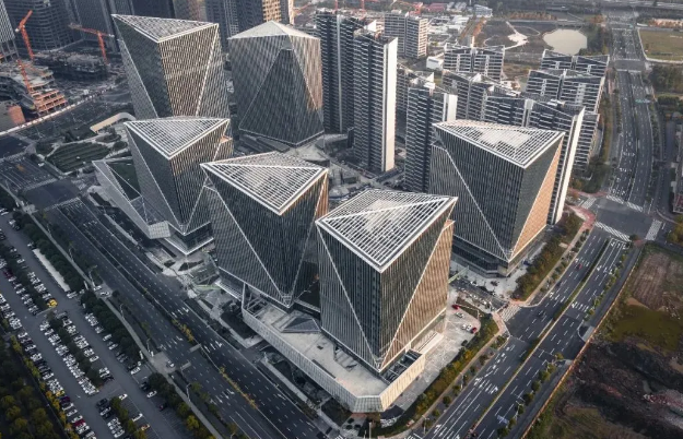 項目由世界著名建筑事務(wù)所KPF創(chuàng)始人之一威廉·佩特森親自操刀,建筑整體呈水晶狀集合造型,線條干凈利落。單棟樓體貌似呈不規(guī)則狀,而從群樓角度來看,卻完美展現(xiàn)建筑的對稱之美。辦公塔樓如同散布在花園中的水晶體塊,矗立于行人軸線網(wǎng)絡(luò)交織的裙樓上方,環(huán)繞開放的、多面城市廣場布局,城市廣場內(nèi)在多個層面上設(shè)有商業(yè)和便利設(shè)施。6棟塔樓均獲得LEED金級認證,在質(zhì)量和細節(jié)上遵循了國際頂級標(biāo)準(zhǔn),同時又秉承了鐵獅門在全球各地對綠色、環(huán)保、節(jié)能的一貫要求開發(fā)建造。
