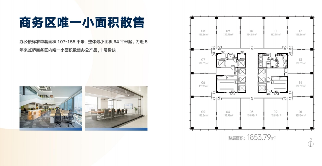 周邊地塊都為自持國內(nèi)龍頭企業(yè)總部拿地本項目為近 5 年中虹橋商務(wù)區(qū)內(nèi)唯一小面積,低總價散售辦公最小